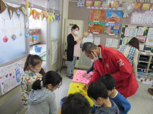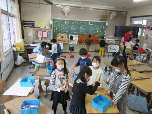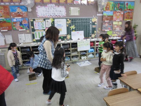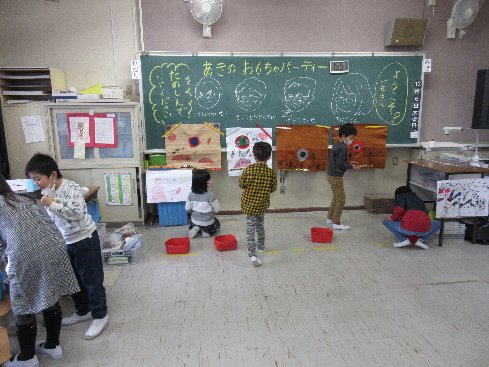 2時間目はあきのおもちゃパーティーをしました。校長先生や教頭先生、教務先生、用務員さんをお招きして楽しく過ごしました。