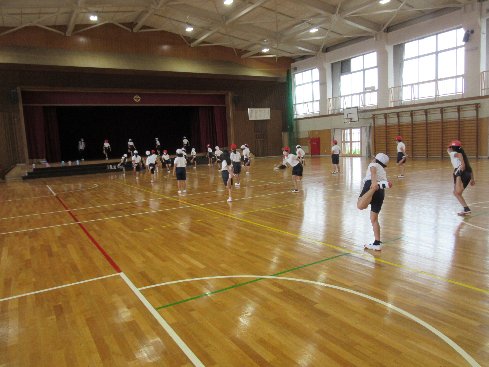3時間目は体育の授業でした。秋竹ストレッチを行いました。