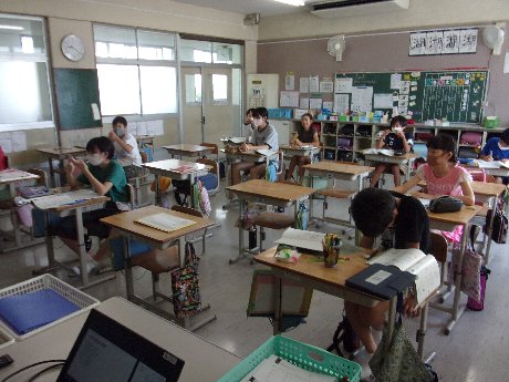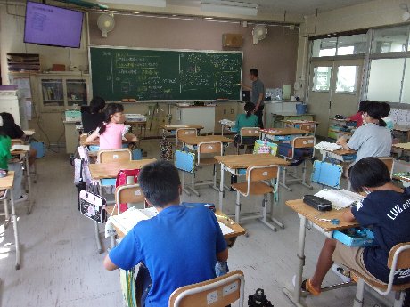 1時間目は算数の授業でした。三角錐の体積から角柱の体積の求め方を考えました。