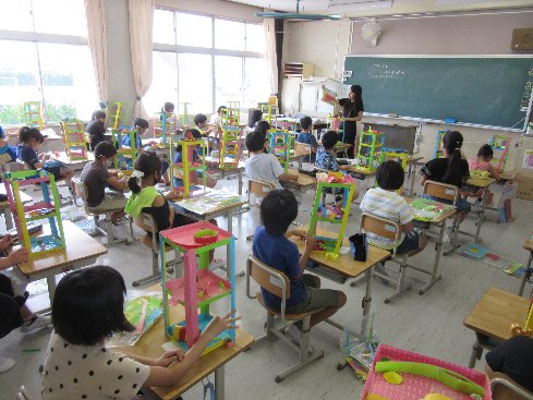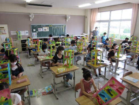 3時間目は図画工作の授業でした。コロコロがーれの作品が完成したので、お互いの作品を鑑賞しました。