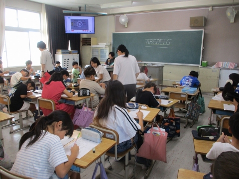 アルファベットを書く練習をしていました。みんな上手に書けていました。