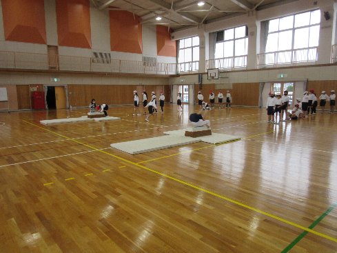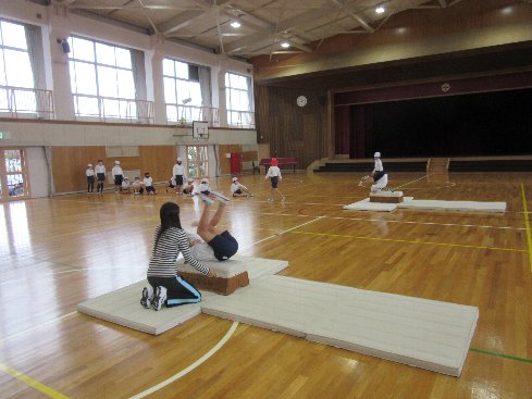 3時間目は体育の授業でした。台上前転に取り組みました。