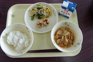 ご飯、牛乳、はっぽうさい、あげしゅうまい
