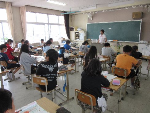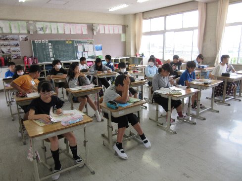 2時間目は理科の授業でした。血液の働きについて学習しました。そのまえに、前時の学習で呼吸について学習した中で疑問に思った「吐いた息の中では火はどうなるの?」という質問が出ました。せっかくだから、実験することになりました。「どんな方法でじっけんしたらいいか」「機材は何が必要か」次々と手順や方法についてのアイデアが出され、「上方置換で呼気をあつめればいい」と既習内容で考えることができました。素晴らしいですね。