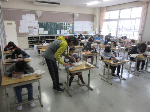 1時間目は国語の授業でした。新出漢字の練習をしました。