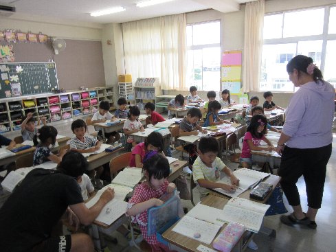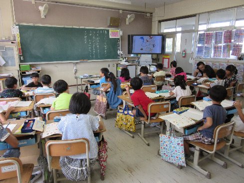 1時間目は国語の授業でした。「ひらがなあつまれ」で教科書の言葉をつなげる学習をしました。