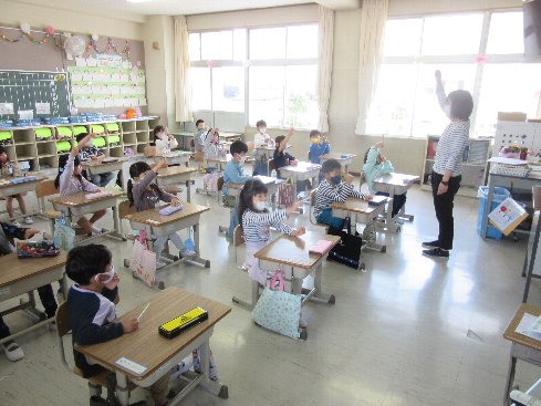 2時間目は国語の授業でした。鉛筆の持ち方の練習をしました。