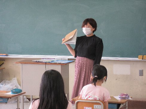 去年の担任だった奥田先生に元気な赤ちゃんを産んでもらえるように、クラスみんなで寄せ書きをして渡しました。