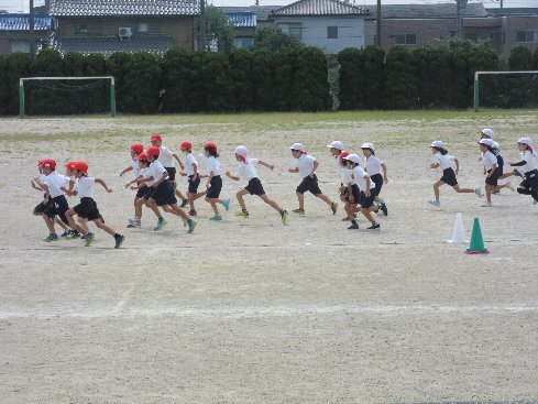 3時間目は体育の授業でした。準備運動をした後、「ねことねずみ」で、運動場を駆け回りました。