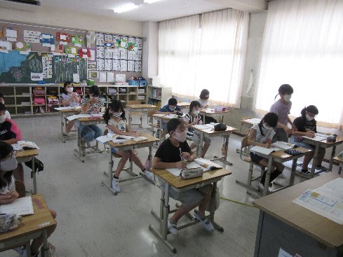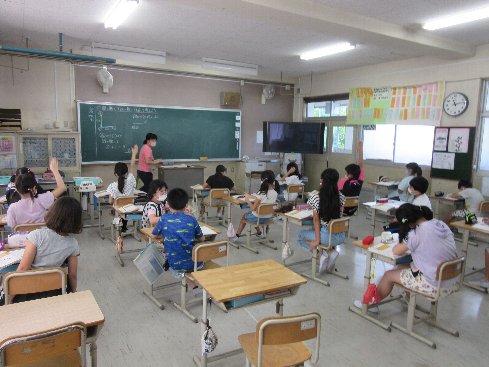 3時間目は算数の授業でした。「間の数と子どもの数」の関係について考えました。