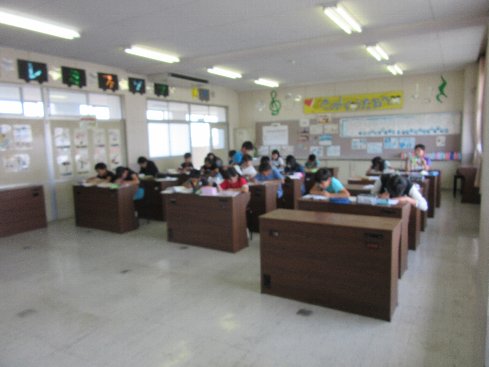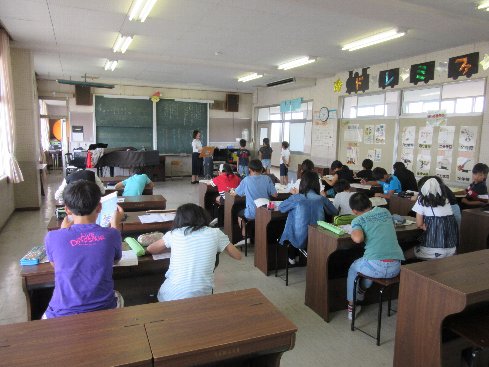 1時間目は音楽の授業でした。順番に「こいのぼり」の歌唱テストをしながら、待っている間は音楽ワークに取り組みました。