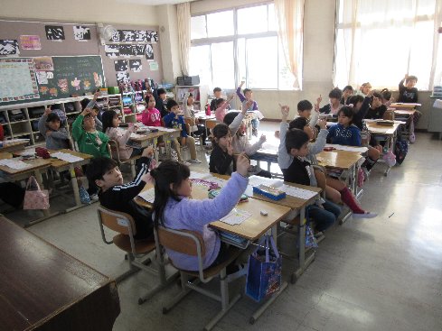 4月13日(金)2時間目は音楽の授業でした。「メッセージ」という歌を、身振り・手振りをつけて楽しく歌いました。さらに、色んな国のことばであいさつを入れ込んで歌いました。