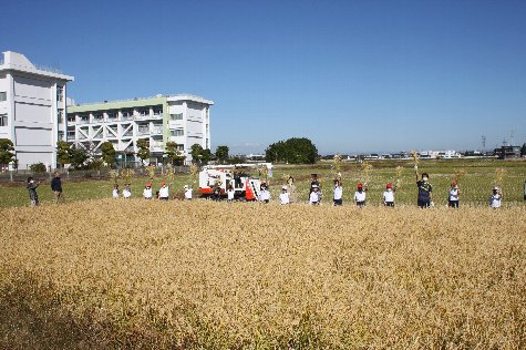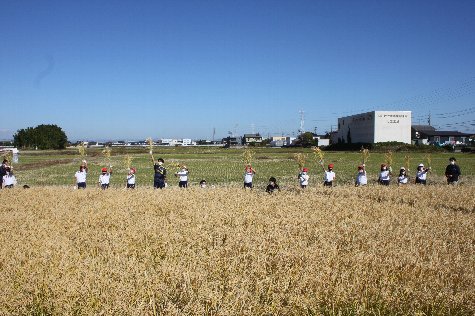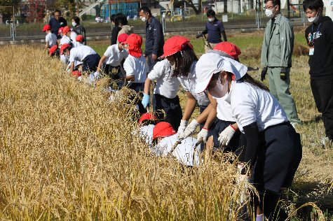 2時間目に稲刈りをしました。6年生の学級閉鎖のため日延べをしましたが、結果的には絶好の稲刈り日和になりました。JAのみなさんのご指導の下、初めての稲刈りに楽しそうに取り組んでいました。