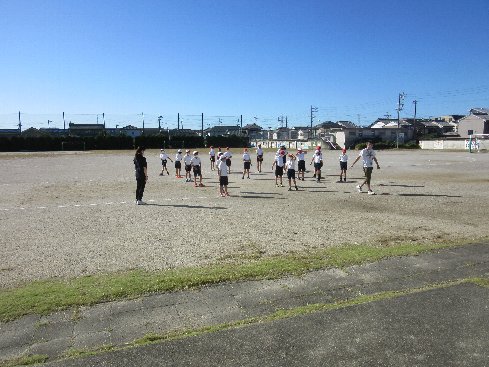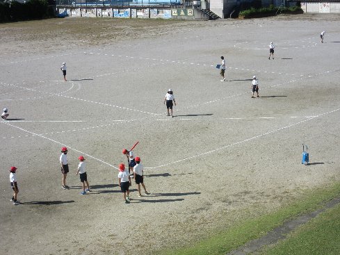 1時間目は体育の授業でした。ティーベースボールをしました。
