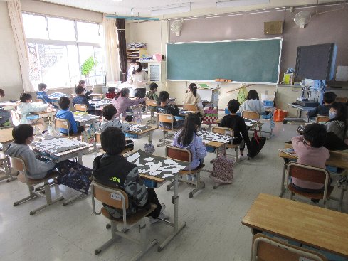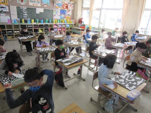 2時間目は図画工作の授業でした。はさみのアートの仕上げをしました。