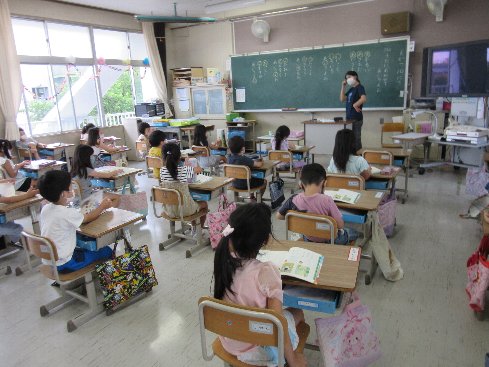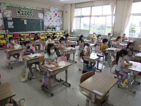 1時間目は国語の授業でした。「す」の練習をした後、教科書の「あいうえお」の勉強をしました。