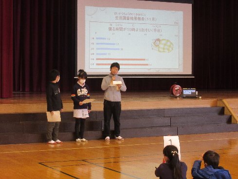 3時間目は、学校保健委員会を行いました。今回は生活リズムとメディアについて考えました。