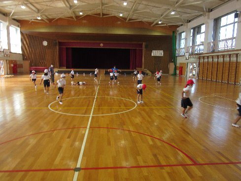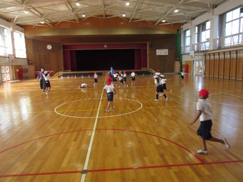 3時間目は体育の授業でした。チョウチョや蝉など、いろいろな昆虫や動物になりきって、動きをまねて運動しました。