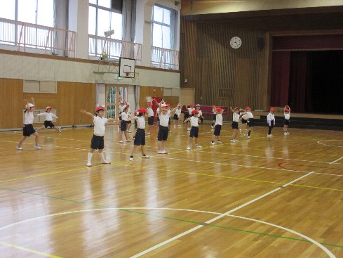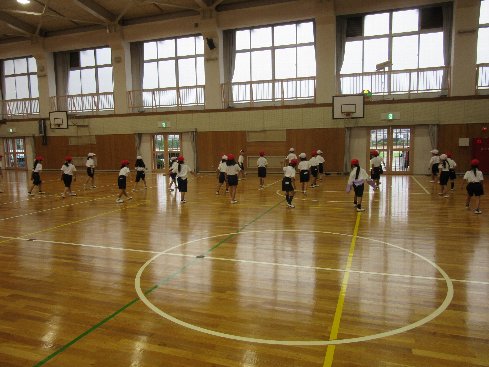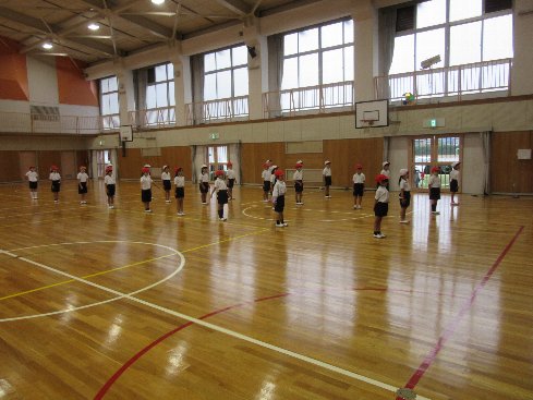 1時間目は体育の授業でした。前回に引き続き集団行動の練習をしました。回れ右や右向け右の練習をしました。
