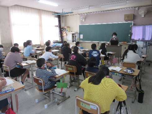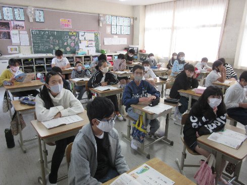 4時間目は書写の授業でした。用紙にあった文字の大きさと配列について、「五月雨を集めてはやし最上川」の句で考えました。