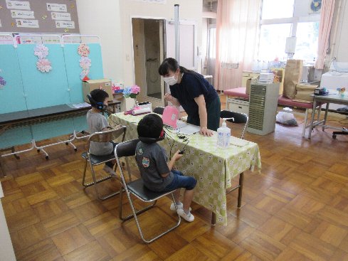 1時間目は聴力検査を行いました。初めての検査でしたが、上手にできました。