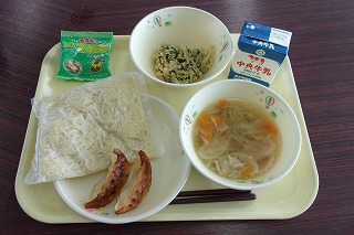 塩ラーメン、牛乳、ぎょうざ、中華サラダ、かんそうどうふ