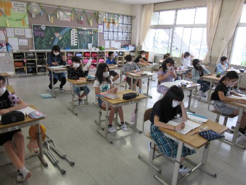 2時間目は国語の授業でした。日常の生活の中で感じたことや思ったことを十七音で表現する、つまり俳句をつくる活動をしました。