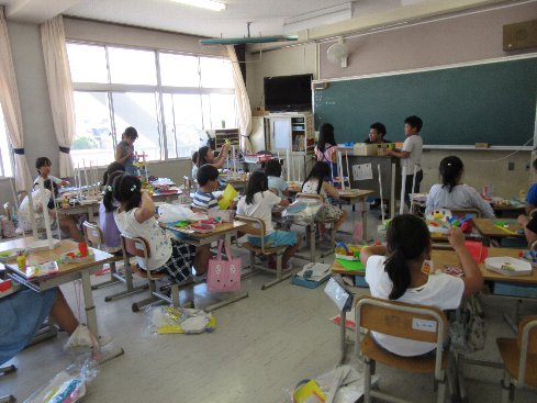 5・6時間目は図画工作の授業でした。「コロコロがーれ」という、塔を作りました。