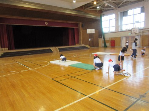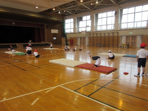 2時間目は体育の授業でした。マット運動で、前転と後転の練習をしました