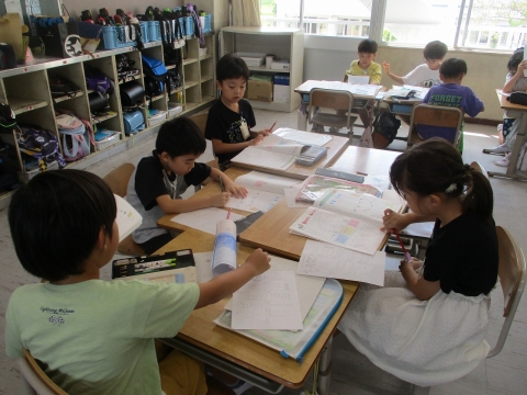 グループの隊形で、日誌の丸付けをしていました。みんな真剣に取り組んでいました。