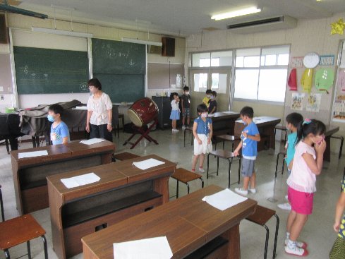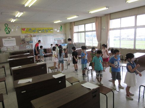 2時間目は音楽の授業でした。太鼓を大勢で叩く太鼓囃子をエアーで演じてみました。