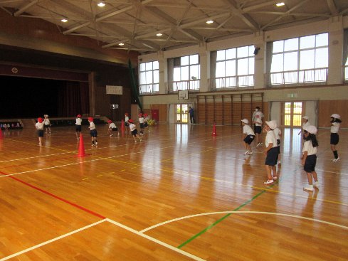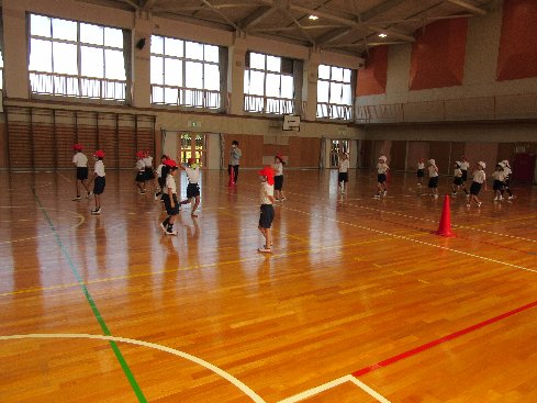 3時間目は体育の授業でした。ドッヂボールを行いました。