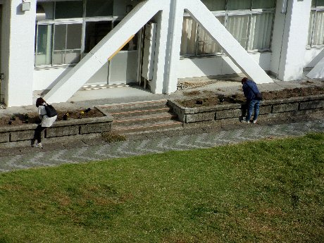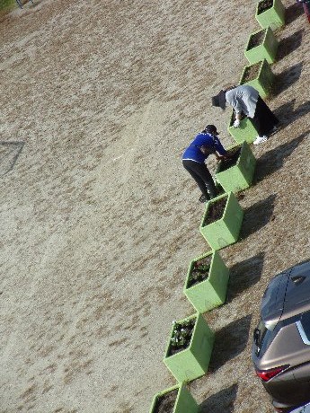 PTAの環境委員の皆さんで、花壇の苗の植え替えをしていただきました。秋冬の花の苗をきれいに植えていただきました。