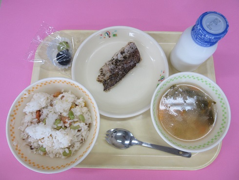 筍ご飯、牛乳、鰆の香味焼、刻み昆布のすまし汁、ヨーグルト