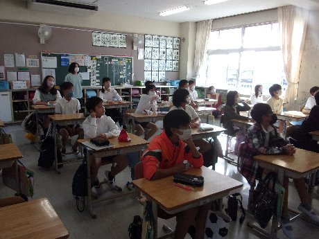 1時間目は発育測定でした。はじめに、良い姿勢についてお話を聞きました。