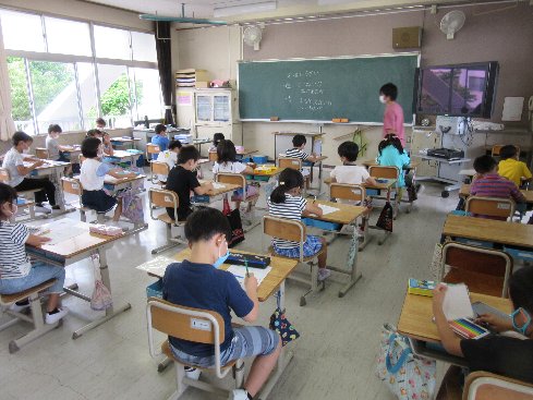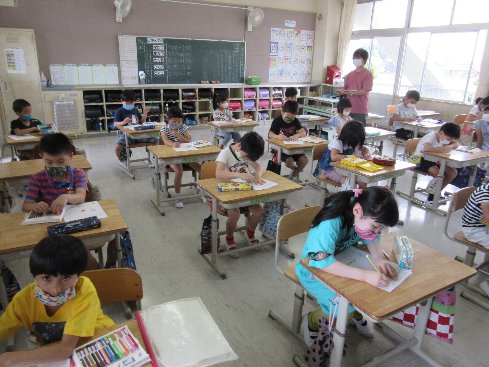 1時間目は学活でした。1年生に学校紹介をする内容を考えました。