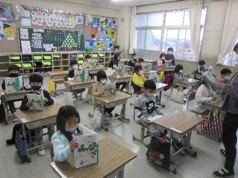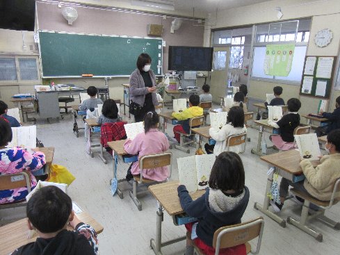 1時間目は国語の授業でした。「おかゆのおなべ」の音読をしました。