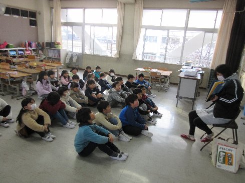今朝の業前の活動はメルポケ(メルヘンポケット)でした。読み聞かせを楽しく聞きました。