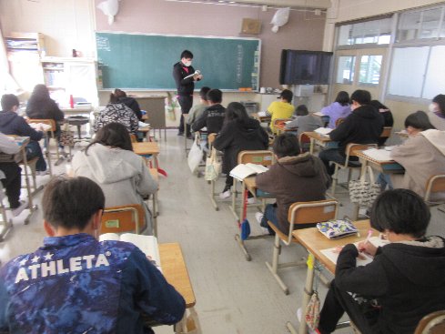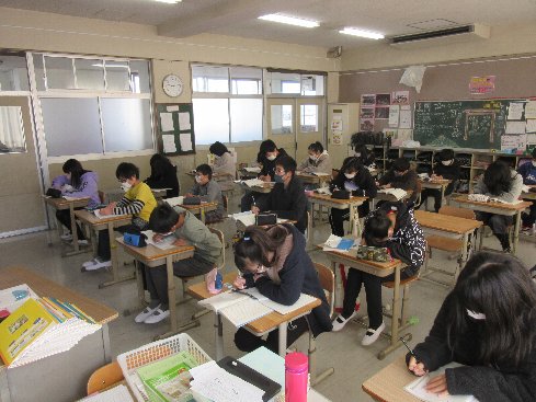 1時間目は国語の授業でした。「メディアと人間社会」を読んで、初発の感想を書きました。