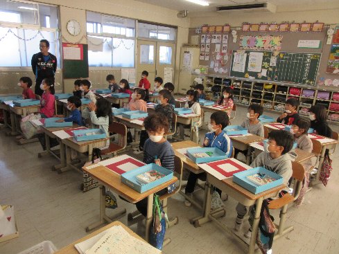 1時間目は図画工作の授業でした。葉脈で擦りだしをしました。