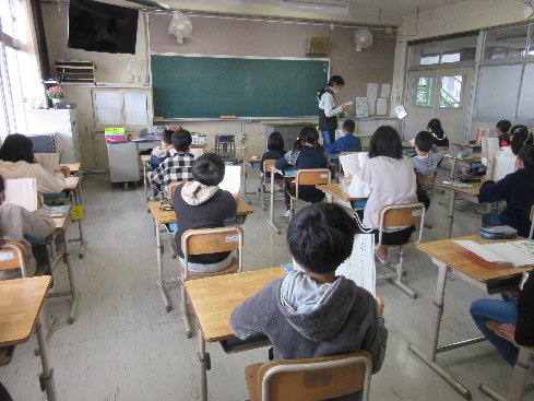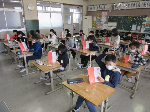 1時間目は国語の授業でした。「短歌・俳句に親しもう」で、リズムを考えながら読みました。