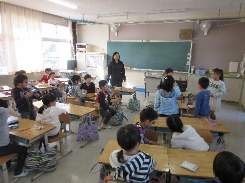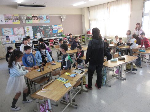 1時間目は算数の授業でした。最初に、九九の小テストを行った後、九九の暗唱をグループで行いました。