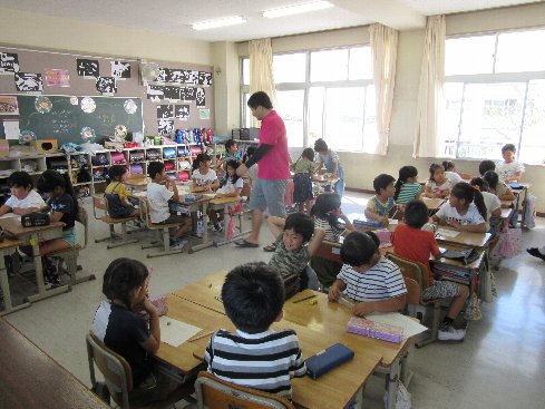 5月30日(水)3時間目は算数の授業でした。章末問題に取り組みました。早くできた子が「小さい先生」になって、理解がまだの子のお手伝いをしていました。
