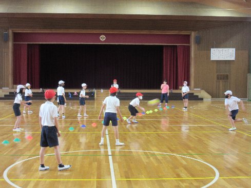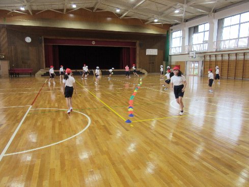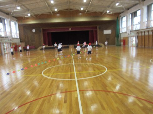 3時間目は体育の授業でした。通常のコートではなく、変わった形のコートでのドッヂボールを行いました。