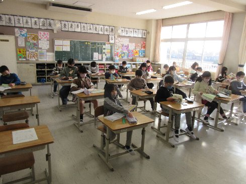 3時間目は国語の授業でした。テストをする前に、少し復習をしました。