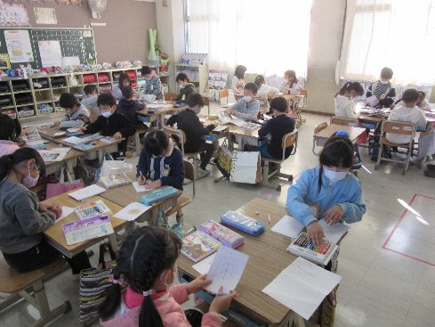 5月29日(火)3時間目は算数の授業でした。問題の答え合わせをしました。早く終わった子は、読書をして待っていました。
