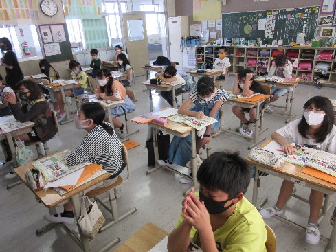 2時間目は英語の授業でした。世界の町で働く人々について英語で考えました。