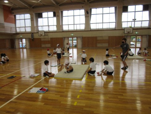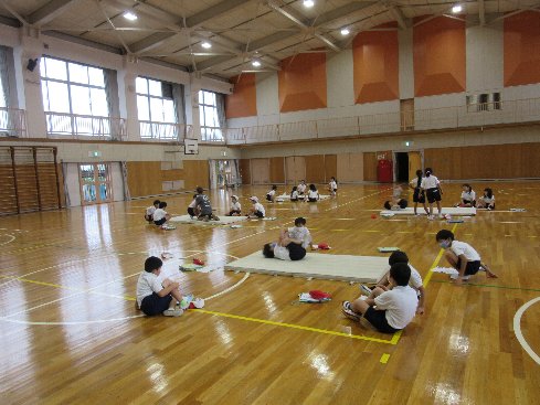 1時間目は体育の授業でした。前転から後転への連続技の練習をしました。