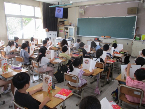 新しい教科書(下巻)の最初のページに書かれている文をみんなで音読していました。