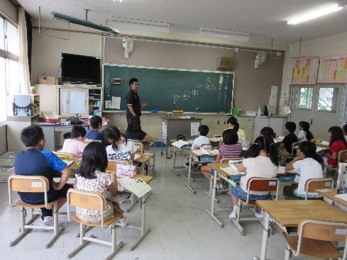 1時間目は国語の授業でした。カンジー博士の漢字しりとりに取り組みました。